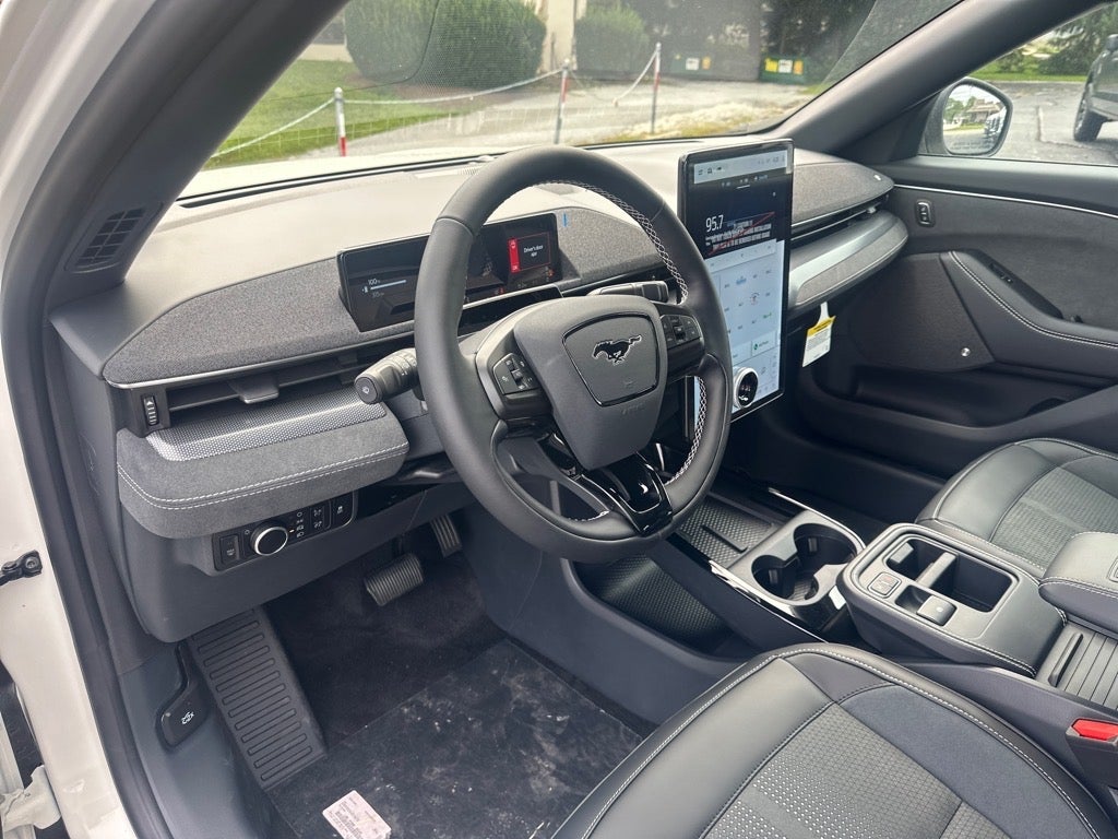 Paoli Ford is proud to present you with another great new Ford. This 2025 Ford Mustang Mach-E GT is loaded with the following Factory Options:Equipment Group 400A Standard Package, Interior Protection Package (1st & 2nd Row Floor Liners w/o Carpet Mats, Cargo Area Cover, and Cargo Floor Liner), 10 Speakers, 4-Wheel Disc Brakes, ABS brakes, Adaptive suspension, Air Conditioning, Alloy wheels, AM/FM radio: SiriusXM with 360L, Apple CarPlay/Android Auto, Auto High-beam Headlights, Auto-dimming Rear-View mirror, Automatic temperature control, Brake assist, Bumpers: body-color, Compass, Delay-off headlights, Driver door bin, Driver vanity mirror, Dual front impact airbags, Dual front side impact airbags, Electronic Stability Control, Emergency communication system: 911 Assist, Exterior Parking Camera Rear, Four wheel independent suspension, Front anti-roll bar, Front Bucket Seats, Front Center Armrest, Front dual zone A/C, Front License Plate Bracket, Front reading lights, Fully automatic headlights, Garage door transmitter, Heated door mirrors, Heated front seats, Heated Perforated ActiveX Performance Seats, Heated steering wheel, Hood & Decklid Stripe/Door Graphics Delete, Illuminated entry, Internet access capable: FordPass Connect, Knee airbag, Low tire pressure warning, Memory seat, Mobile Power Cord (120V/240V), Mustang Mach-E GT Performance Upgrade, Navigation system: Connected Navigation, Occupant sensing airbag, Outside temperature display, Overhead airbag, Overhead console, Panic alarm, Panoramic Fixed-Glass Roof, Passenger door bin, Passenger vanity mirror, Power door mirrors, Power driver seat, Power Liftgate, Power passenger seat, Power steering, Power windows, Radio data system, Radio: B&O Sound System by Bang & Olufsen, Rain sensing wipers, Rear anti-roll bar, Rear seat center armrest, Rear side impact airbag, Rear window defroster, Rear window wiper, Remote keyless entry, Security system, SiriusXM w/360L, Speed control, Speed-sensing steering, Speed-Sensitive Wipers, Split folding rear seat, Spoiler, Steering wheel mounted audio controls, SYNC 4A w/Enhanced Voice Recognition, Telescoping steering wheel, Tilt steering wheel, Traction control, Trip computer, Turn signal indicator mirrors, Variably intermittent wipers, and Wheels: 20 Monochromatic High Gloss Black-Painted.